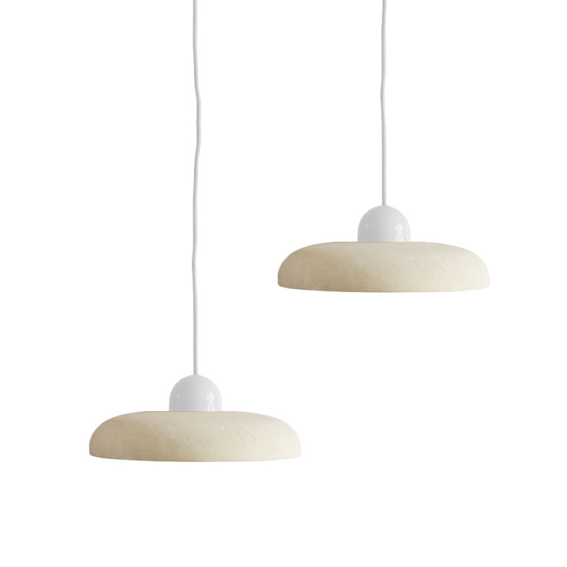 Set di due pendel di colore bianco o nero a scelta, con paralume a lanterna in stile industriale realizzato in Pietra Leccese lavorata artigianalmente nei laboratori Giorgio Angelè. La lampada a sospensione monta portalampada E27 predisposto per lampadine a risparmio energetico o led a scelta (non incluse nella confezione). I pendel hanno lunghezza massima del cavo 1,20m e sono regolabili alla lunghezza desiderata. Le dimensioni del paralume sono d 17x h 4 cm, il peso è di 0,9 Kg a pendel.