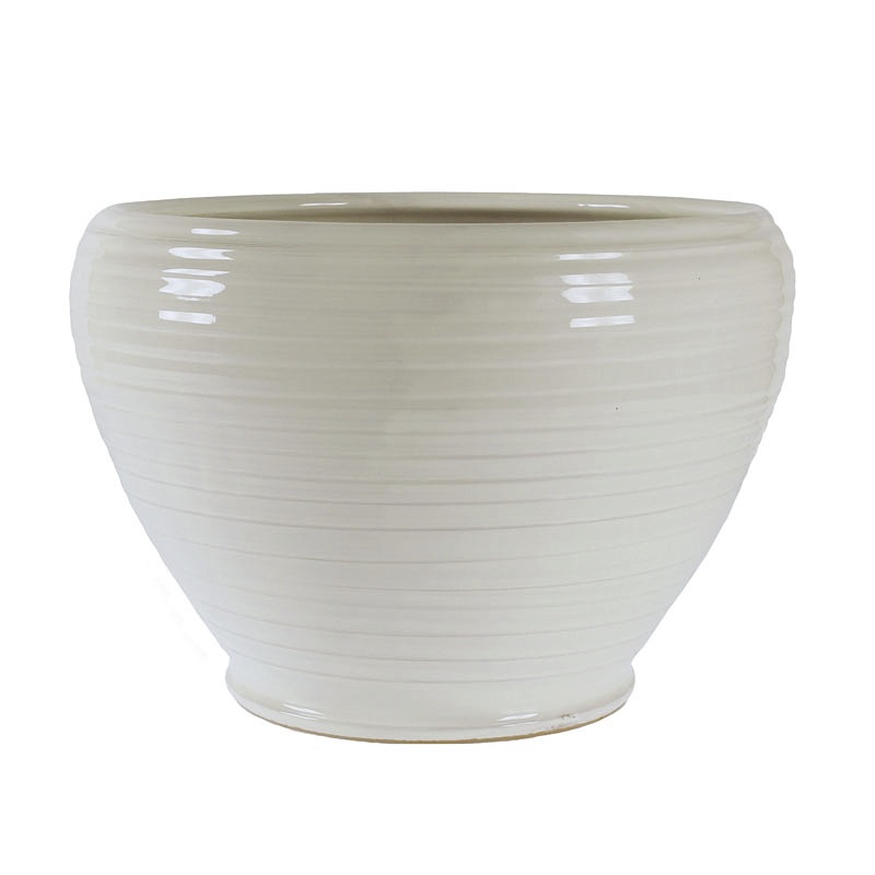 Vaso in ceramica smaltata di colore panna, caratterizzato da una delicata finitura rigata in grado di valorizzarne la forma. Le dimensioni del vaso sono diametro 25cm per h 20cm ma è possibile realizzarlo anche in dimensioni su misura e colori a scelta scrivendo a shop@archistyle.it